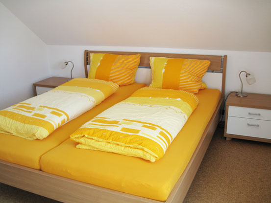Unsere Wohnung ist mit 3 seperaten Schlafzimmern für bis zu 6 Personen ausgelegt und 100 qm groß. In einem Schlafzimmer befindet sich ein Doppelbett während die beiden anderen Schlafzimmer mit jeweils zwei Einzelbetten ausgestattet sind.